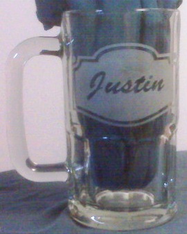 To give you more details, sandblasting glass is a process that you use a sandblaster to frost or etch glass. Usually this is used for creating privacy glass or for etching designs into glass windows, beer mugs, car windows (be careful though), and glass awards. If your etching in designs, you will obviously need to use stencils to have a smoothly etched design. Below is an example of the beer mugs that I sandblasted with the use of stencils: